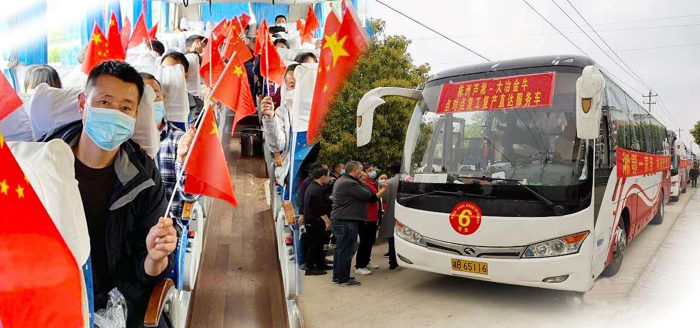 自新冠疫情爆發以來,全國各地學校全面停課,企業全面停業停產,在黨中央的正確領導和強力干預下,新冠疫情得到初步遏制。為了響應政府號召,加快復工復產步伐,切實解決復工人員返崗難的問題,確保疫情防控和復產復工兩不誤,自2月底開始,湘運集團采用“點對點”一站式直達運輸服務方式,調派客運車輛分10100余臺次,先后分別赴淥口、醴陵、攸縣、茶陵、炎陵、瀏陽、重慶、黃花機場、湖北等地共接送返崗務工人員2000余人。由于防控程序規范,運輸服務到位,不僅得到了各級領導和相關部門的充分肯定,而且得到了復工企業和務工人員的一致好評。